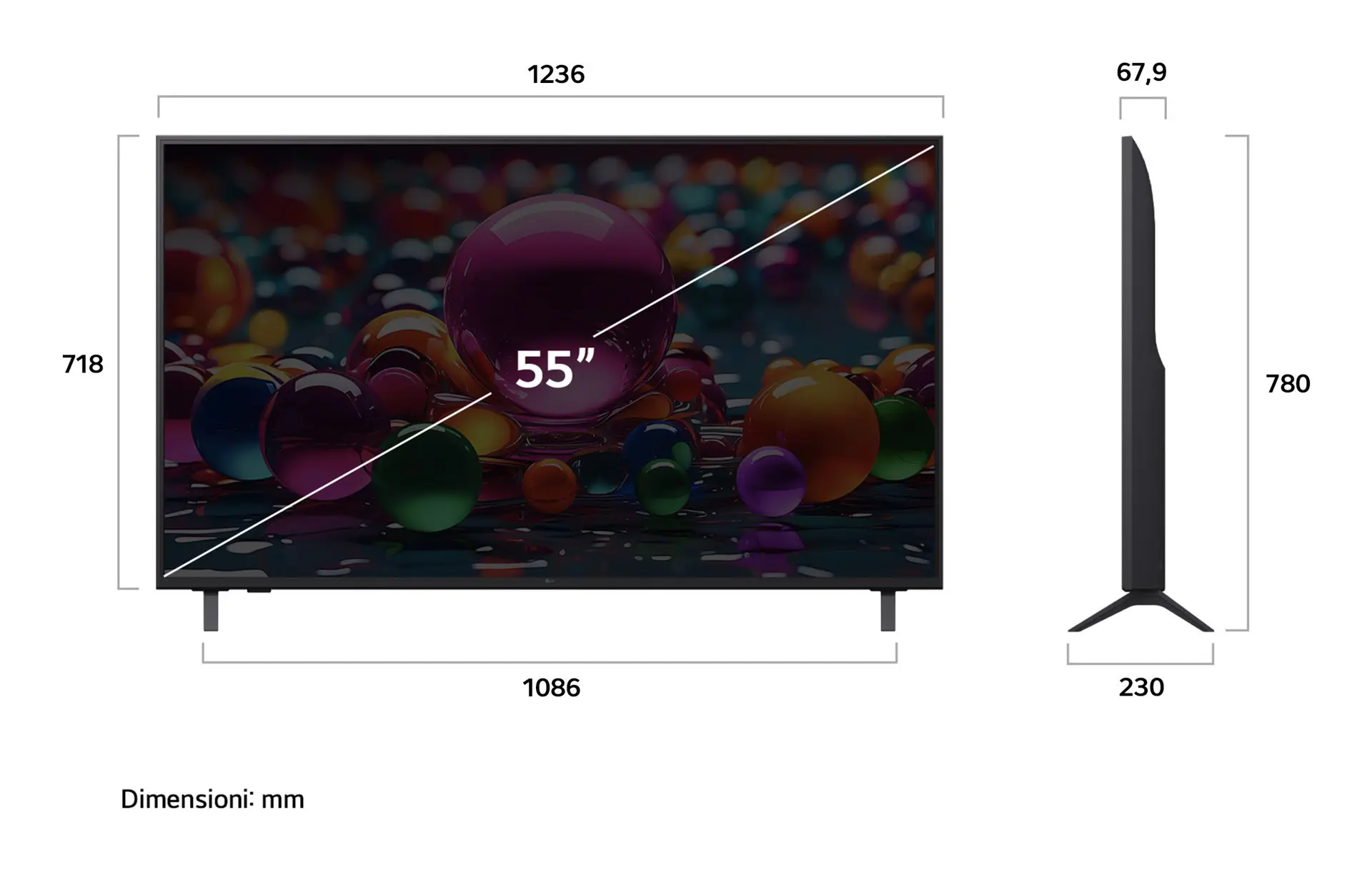 | Dimensioni diagonale schermo | 139,7 cm (55") |
