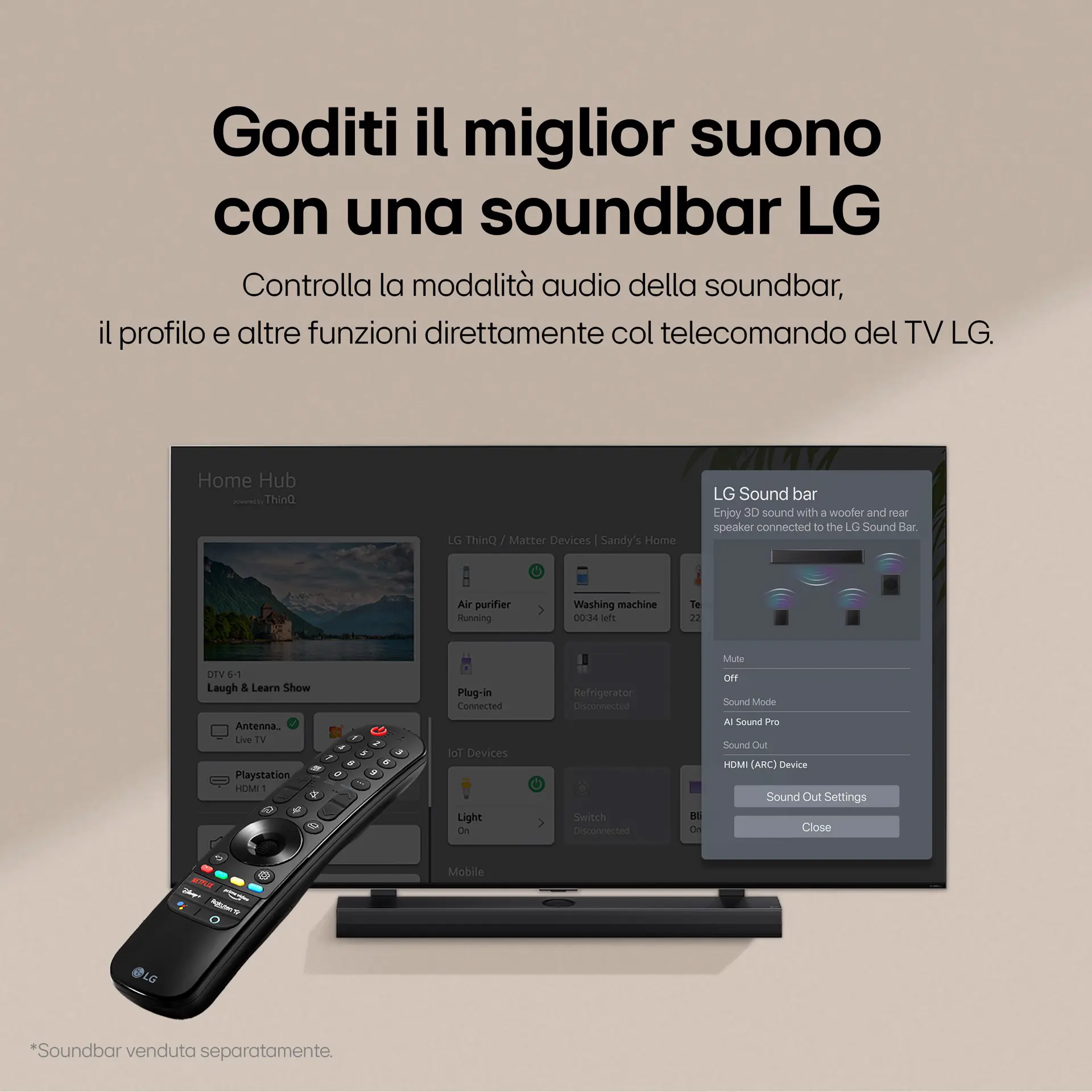 | Tecnologie LG (AV/TV) | AI Sound Pro, ThinQ™ |