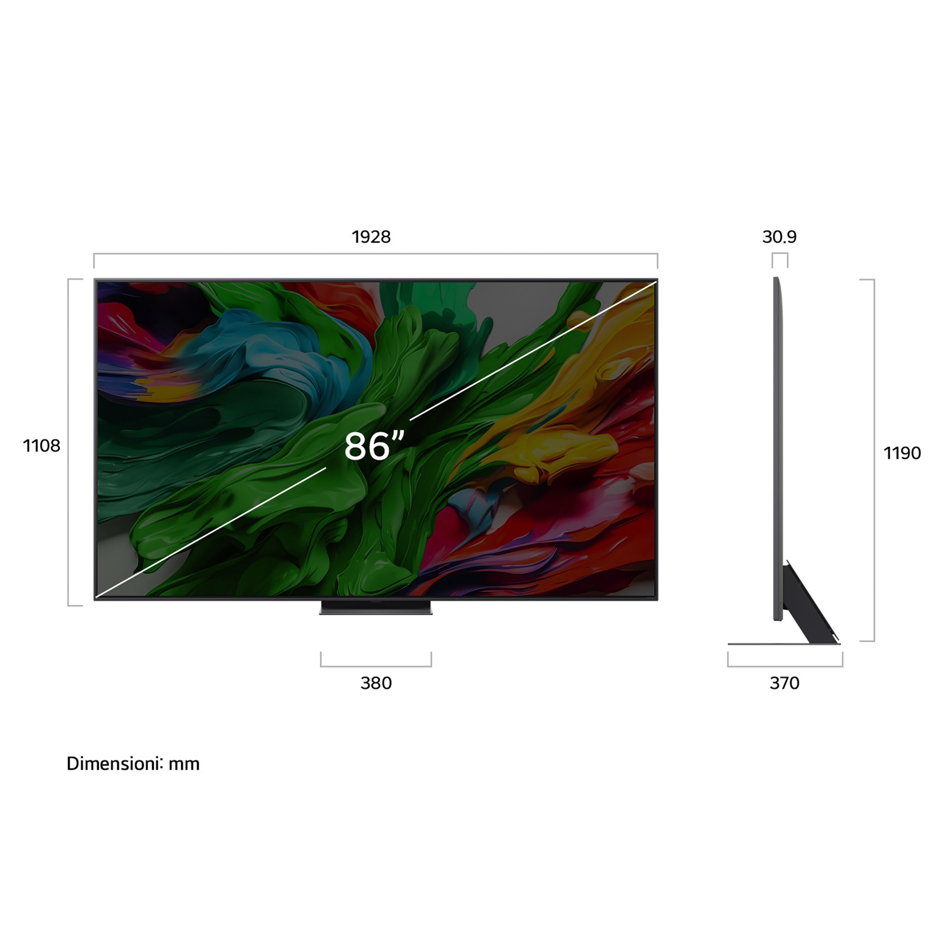 | Profondità (con supporto) | 370 mm |