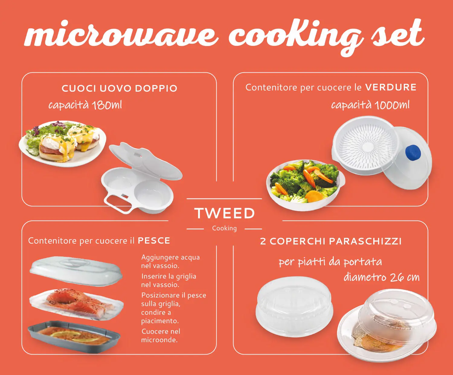 TWEED TW077 Kit accessori per microonde 3 contenitori assortiti + 2 coperchi paraschizzi