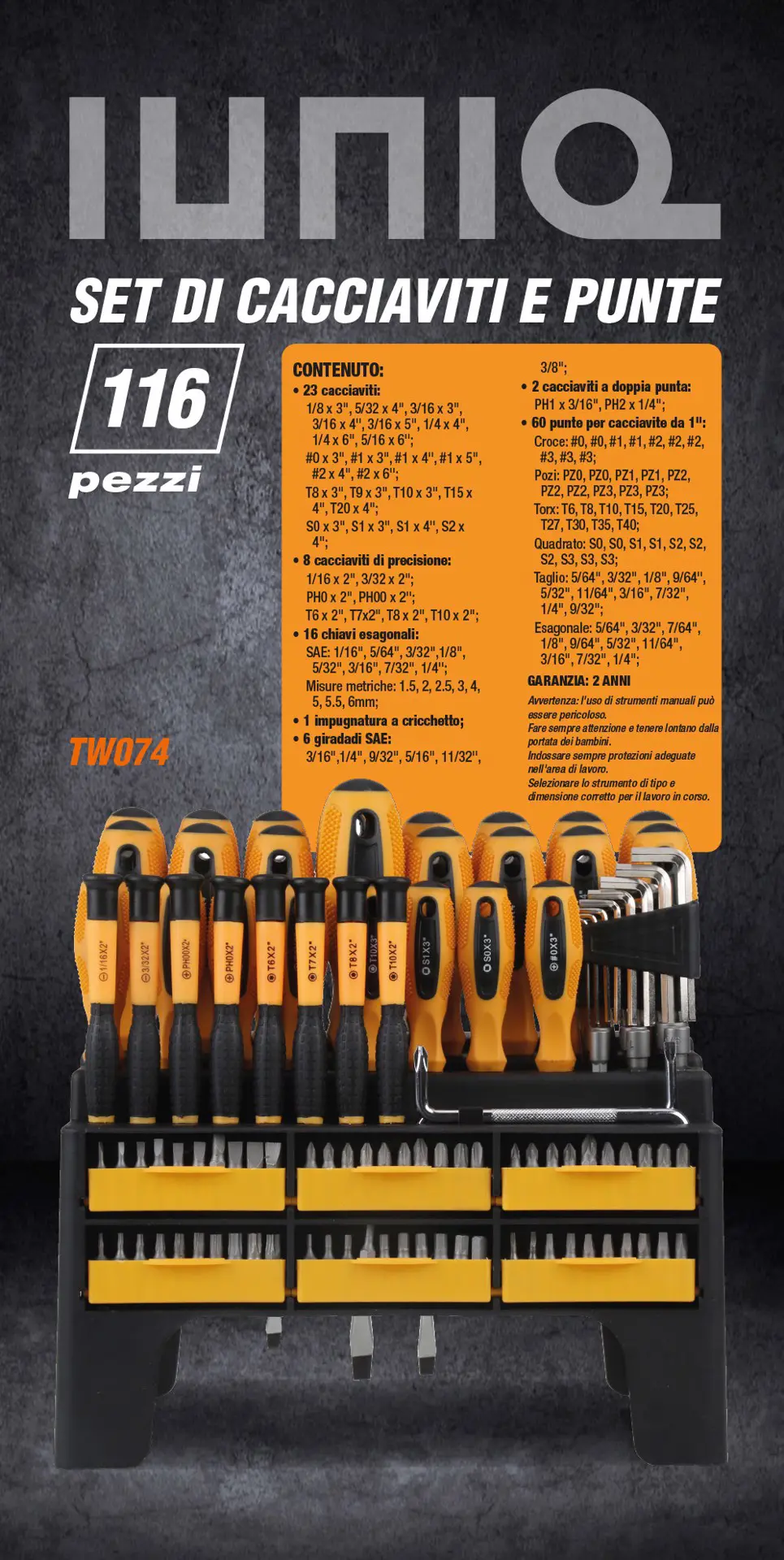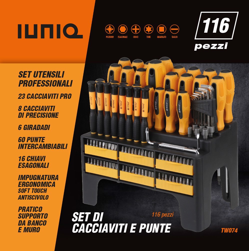 IUNIQ TW074, Nero, Arancione, 116 strumenti