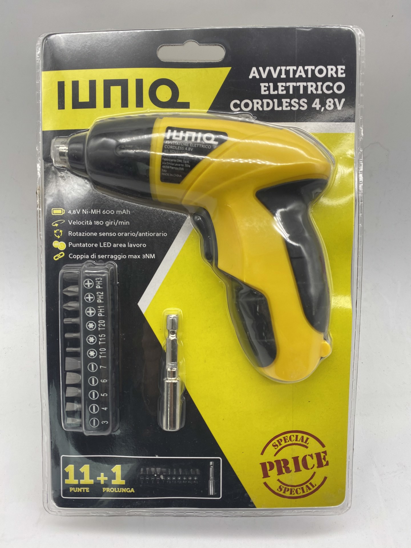 XD Enjoy Avvitatore Elettrico Cordless 4,8v, Cacciavite elettrico, Impugnatura a pistola, Nero, Giallo, Gancio per appendere, 180 Giri/min, 3 Nm