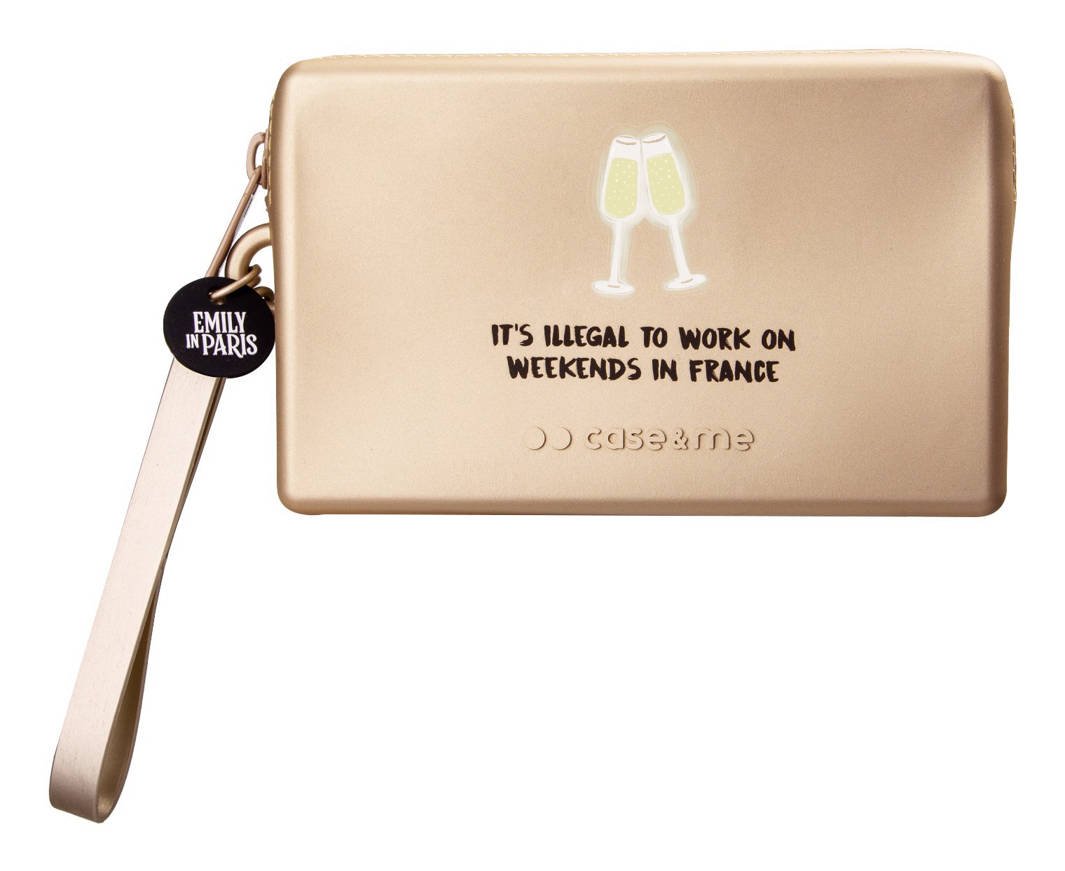 della serie "it's illegal to work on weekends in France" con due bicchieri che brindano. Porta sempre con te un pizzico di leggerezza e
