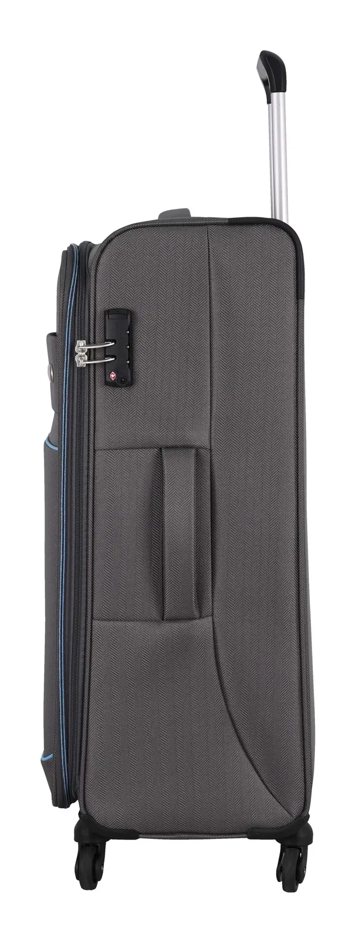il Kit contiente 2 trolley in tessuto: - 1 Trolley in Tessuto 36 Litri - 1 Trolley in Tessuto 86 Litri Blocco TSA 4 ruote piroettanti Manico regolabile Doppia impugnatura antiscivolo Chiusura laterale con combinazione Tasca interna con rete e zip Materiale: custodia: tessuto 100% poliestere carrello: Ferro+Alluminio ruote: ABS+PE+PP
