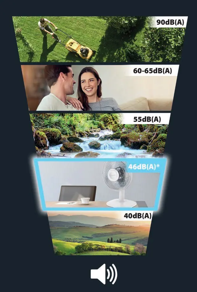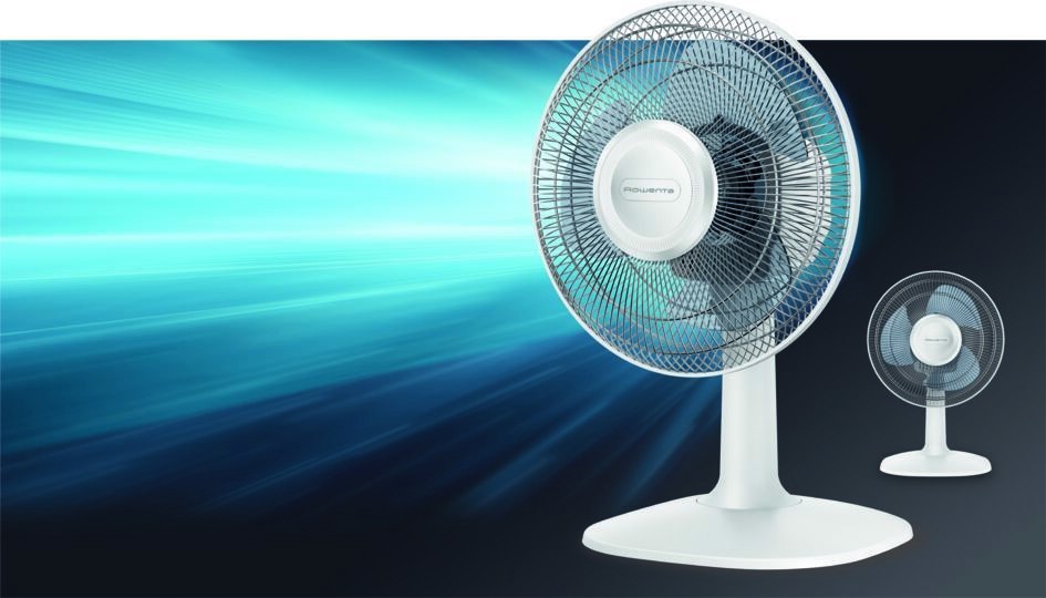 ROWENTA Essential+ VU2330 Essential +, Ventilatore da Tavolo, 3 Velocità, Silenziosità 46 dBA, Design compatto, Flusso d’aria mx 34 m3/min, Bianco