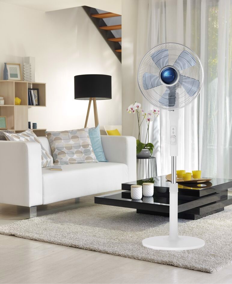 Rowenta Turbo Silence Extreme+ VU5840. Tipo: Ventilatore domestico con pale, Colore del prodotto: Bianco, Installazione: Pavimento. Tipologia alimentazione: AC, Tensione di ingresso AC: 220 V, Frequenza di ingresso AC: 50 Hz. Larghezza: 453 mm, Profondità: 430 mm, Altezza: 1320 mm. Larghezza imballo: 225 mm, Profondità imballo: 670 mm, Altezza imballo: 455 mm. Quantità per container intermodale (20 piedi): 414 pz, Quantità per container intermodale (40 piedi): 864 pz, Ampiezza del pallet: 80 cm