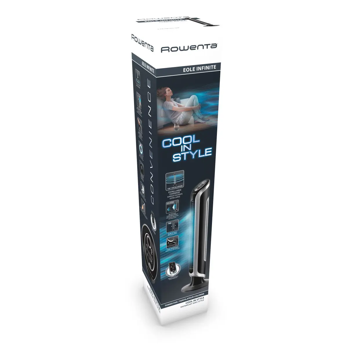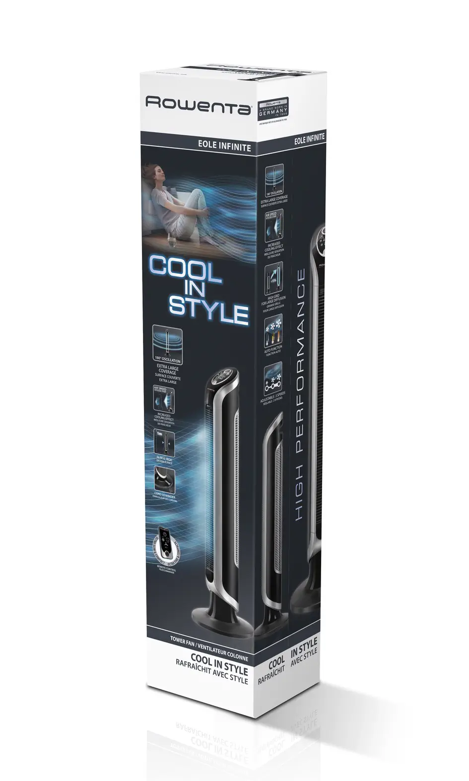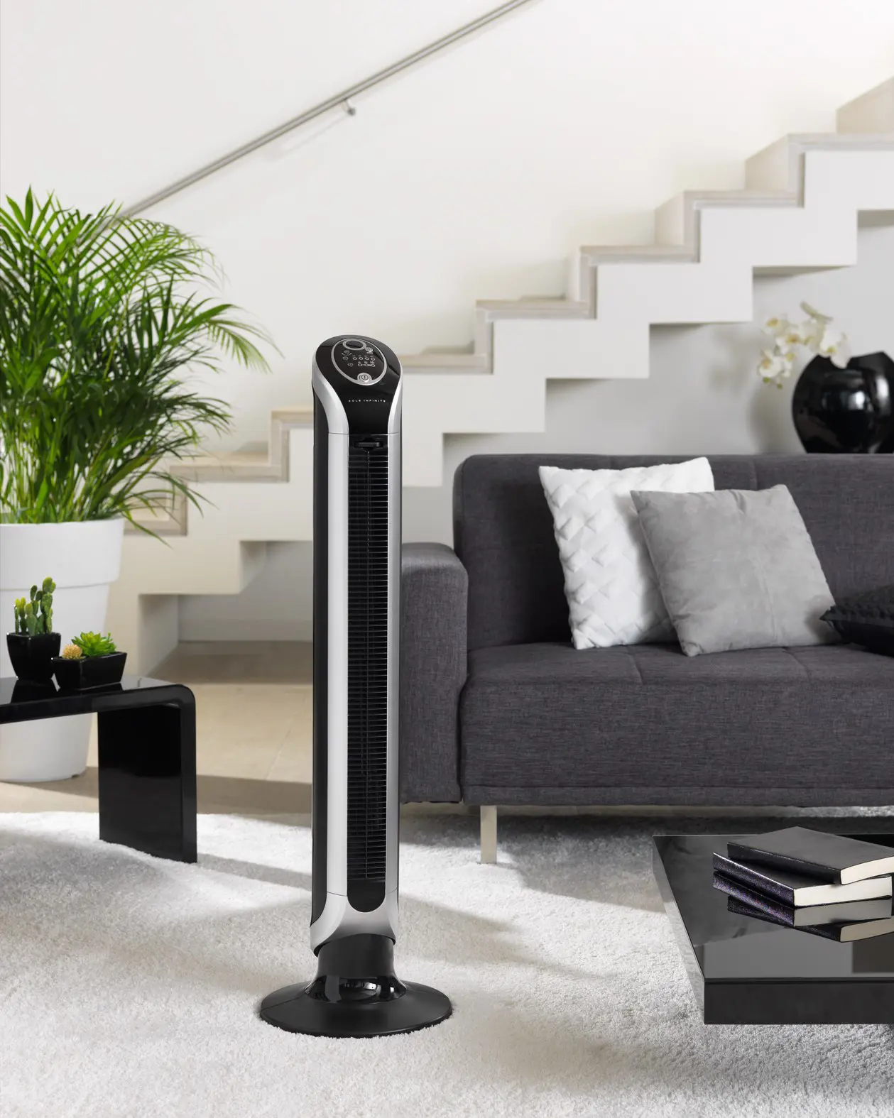 Mantieniti sempre fresco con stile, grazie al ventilatore a torre digitale che offre comfort e prestazioni elevate. La sua tecnologia di oscillazione a 180° garantisce una sensazione rinfrescante in tutta la stanza, azionata dal flusso d'aria potente e dall’ampia diffusione dell'aria.