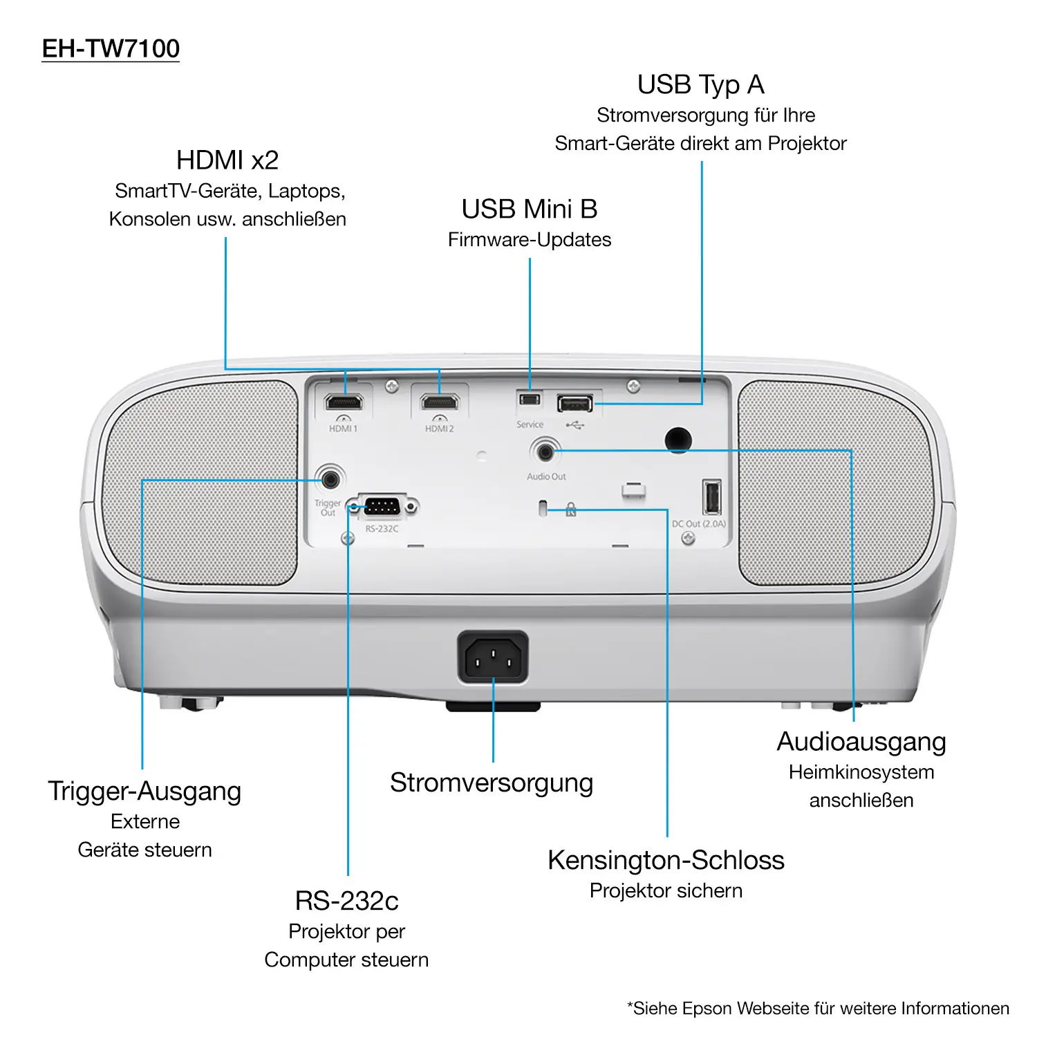 Plug-and-play per guardare contenuti 4K semplicemente collegando un dispositivo per lo streaming sul retro del videoproiettore: sarà pronto in un attimo. Puoi anche riprodurre contenuti 4K da console per videogiochi, set-top box, lettori Blu-ray, tablet o altri dispositivi tramite le due porte HDMI. Puoi apprezzare il suono grazie ai due altoparlanti integrati da 10 W, oppure puoi scegliere di collegare una soundbar tramite Bluetooth.