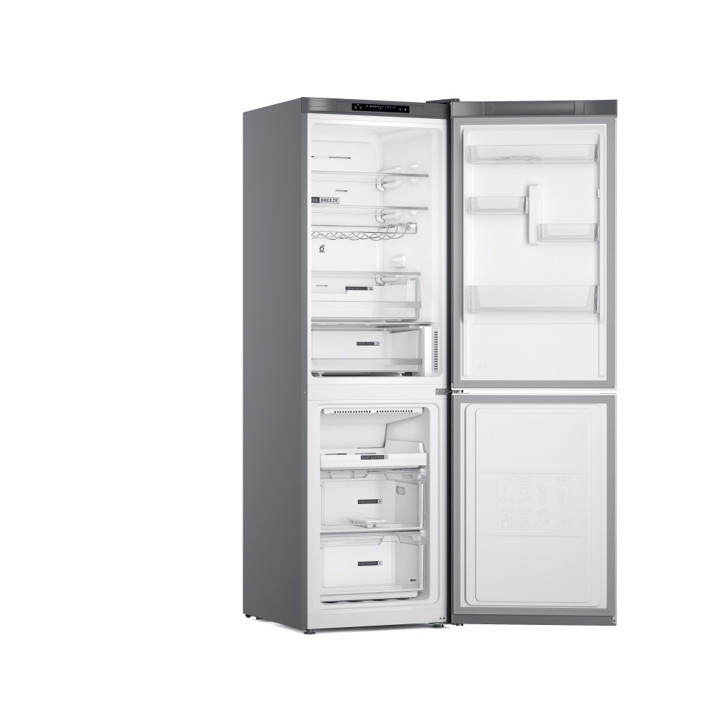 Caratteristiche di questo frigorifero combinato a libera installazione Whirlpool: color inox. Design Optic Inox con protezione anti-impronte. No Frost, la tecnologia che previene efficacemente la formazione di ghiaccio nel congelatore riducendo i livelli di umidità. Modello alto e capiente, adatto per le esigenze di tutta la famiglia. Ripiani in vetro, robusti ed eleganti al tempo stesso.