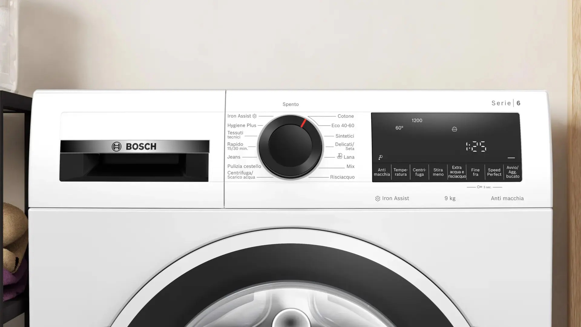 | Tecnologie Bosch (cura dei vestiti) | ActiveWater Plus, AntiStain, EcoSilence Drive™, Iron Assist, SpeedPerfect |
