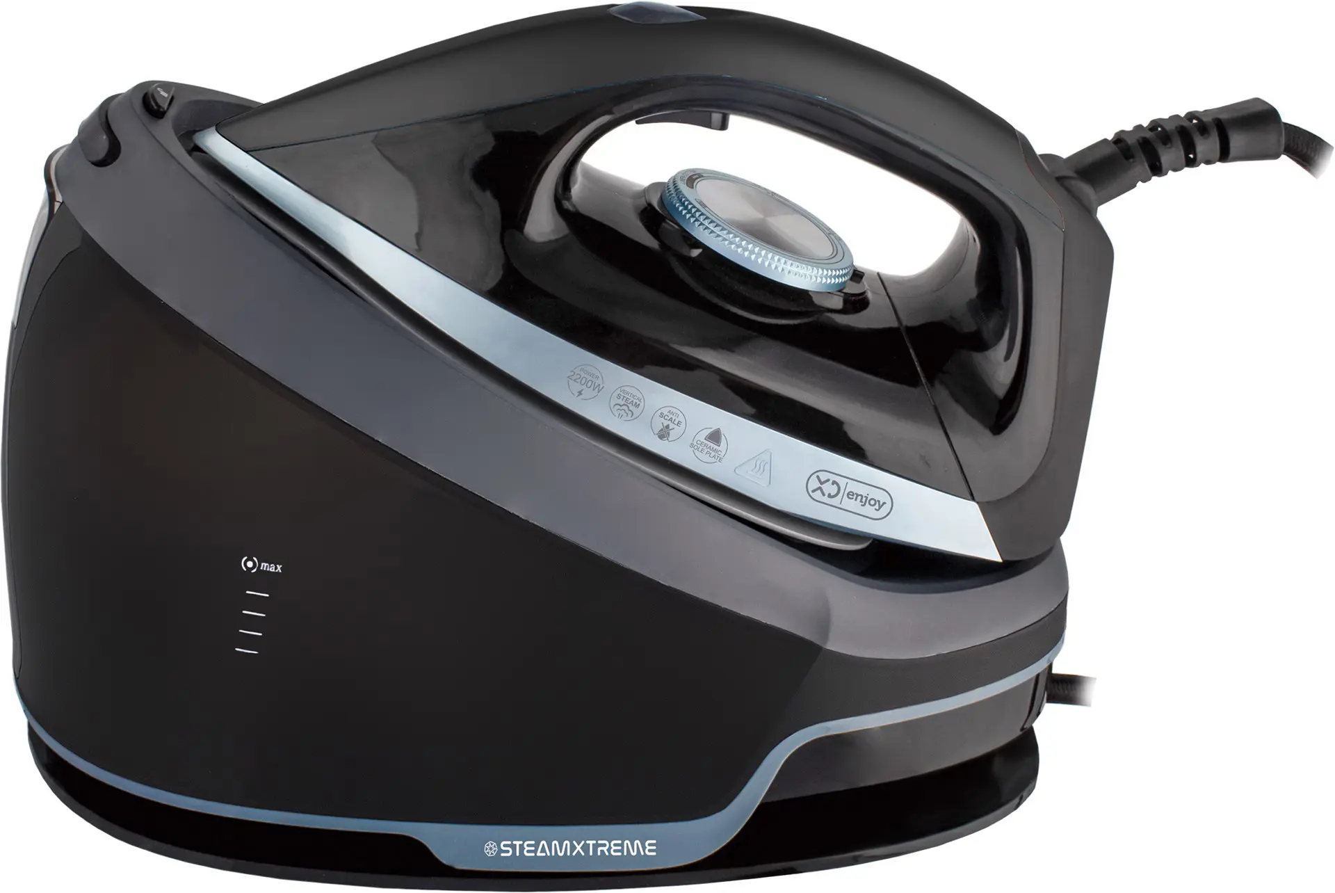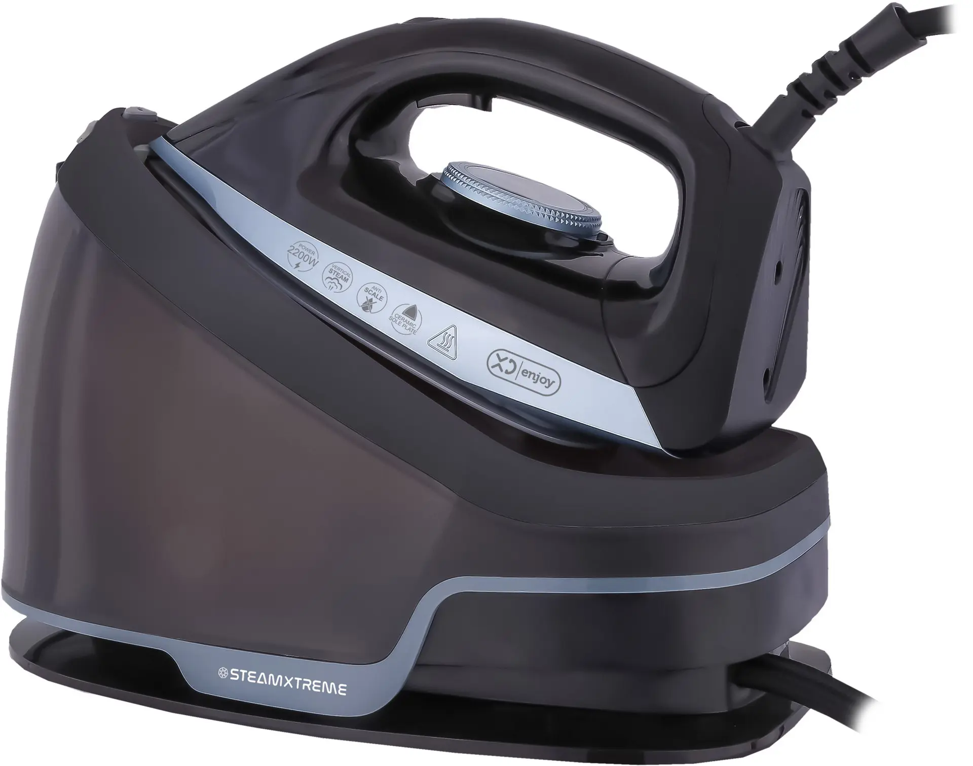 XD Enjoy XDSEA885. Potenza ferro: 2200 W, Emissione concentrata vapore: 450 g/min, Materiale piastra: Careeza. Tensione di ingresso AC: 220 - 240 V, Frequenza di ingresso AC: 50/60 Hz. Lunghezza cavo: 1,9 m. Larghezza: 330 mm, Profondità: 183 mm, Altezza: 241 mm. Larghezza imballo: 400 mm, Profondità imballo: 232 mm, Altezza imballo: 265 mm
